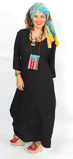 Size GuideFreedom Black Zen Long-Sleeve Dress BUST: 64" HIPS: 88" LENGTH: 58" We all must have an elegantly "simple" black dress in our closets. This is beautifully made with plenty of...