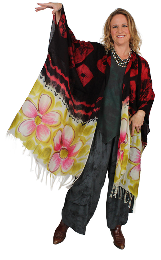 Size GuideMOROCCAN COTTON SOUSDI Fabric: 65% cotton 35% rayon Hand-Wash Cool Hang to Dry or Dry Clean ONE SIZE FITS SMALL-7X • Bust 76"• Sleeve Width 30"• Hips 76"• Length 34"...
