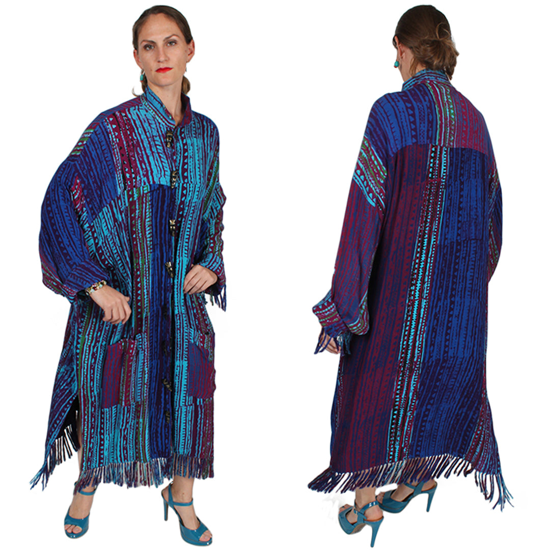 Size GuideOne of a Kind - Clearing Warehouse Acrylic Care Hand Wash Lay Flat to Dry BUST 50" HIPS 60" LENGTH 38" Swing into style with this artsy hi-low jacket that...