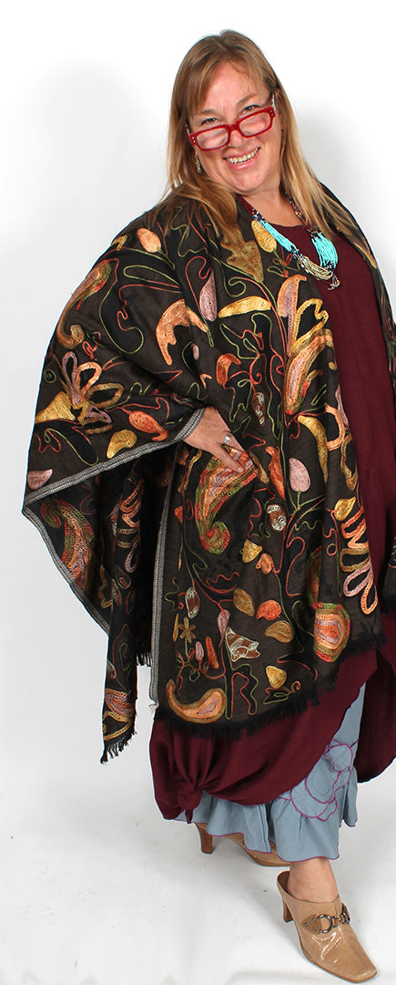Size GuideANU WOOL Embroidered Scarf One: 27" x 86" Meditation Shawl, Embroidery Scarfscarf, scarves holiday ornament, gift, home and garden SHAWL. Beautiful, Really Big perfect for winter wear. Care; dry clean The...