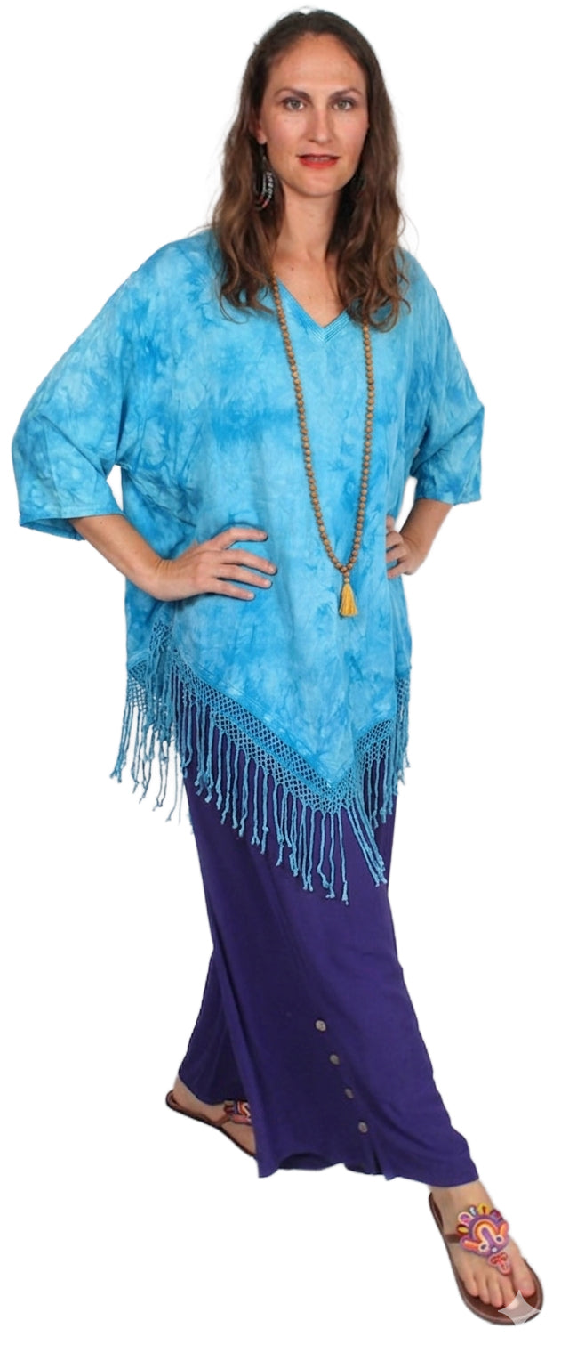 Size GuideThis vintage Monsoon Fringe top features a stunning crystal dye finish in vibrant turquoise, creating a unique, cloud-like depth through a specialized low-immersion process. The bohemian silhouette is defined...