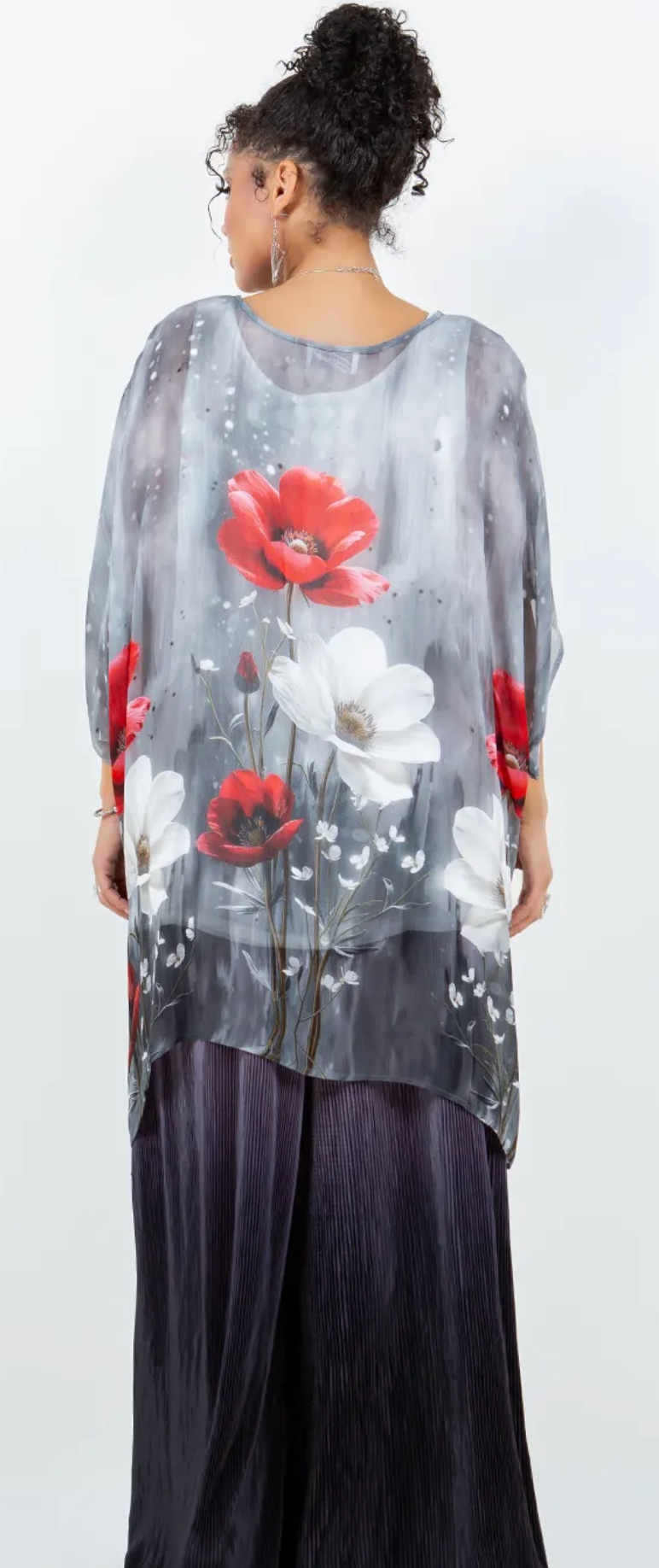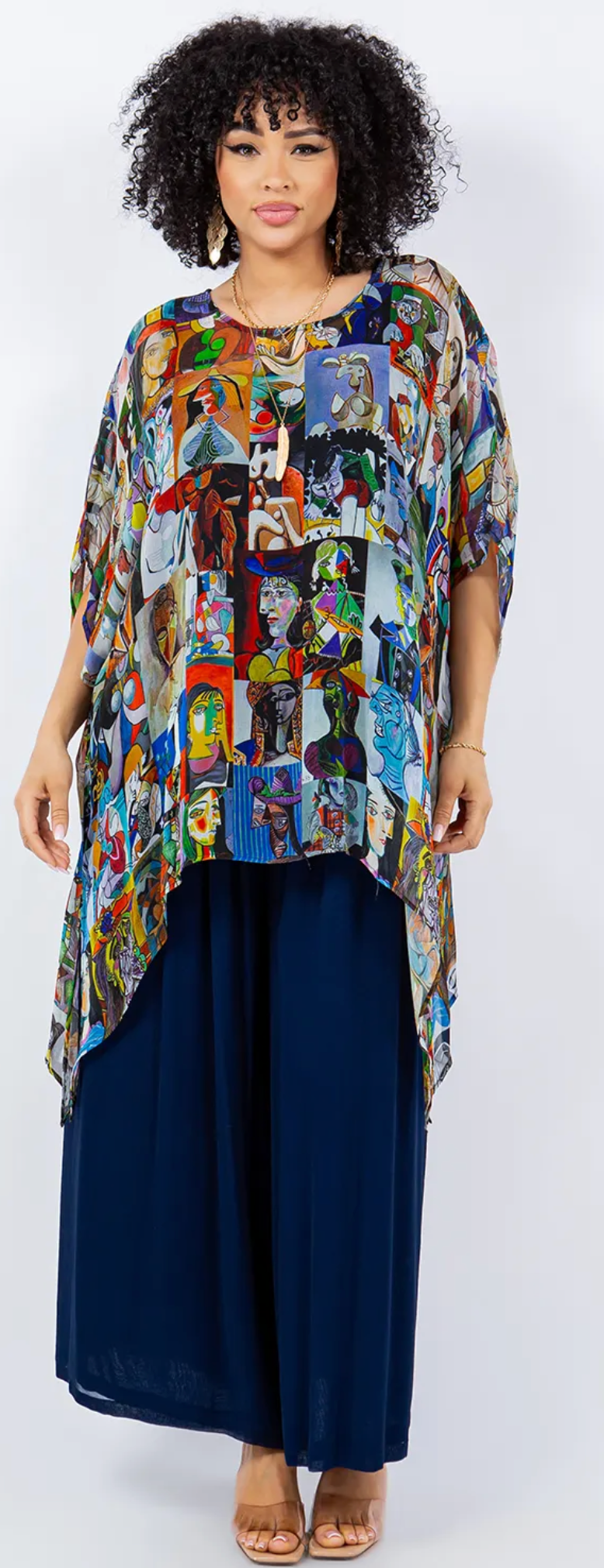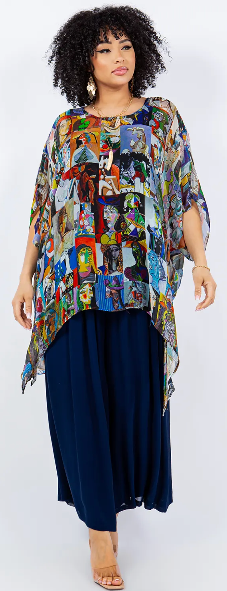 Size GuidePoly HAND-WASH LINE DRYONE SIZE FITS SML-6X • Bust 76"• Upper Arm 40"• Hips 76" • Length 29" - 38" We all love these throw-em-on-and-Go Oversize Tops. Sophisticated Casual Clothing is...