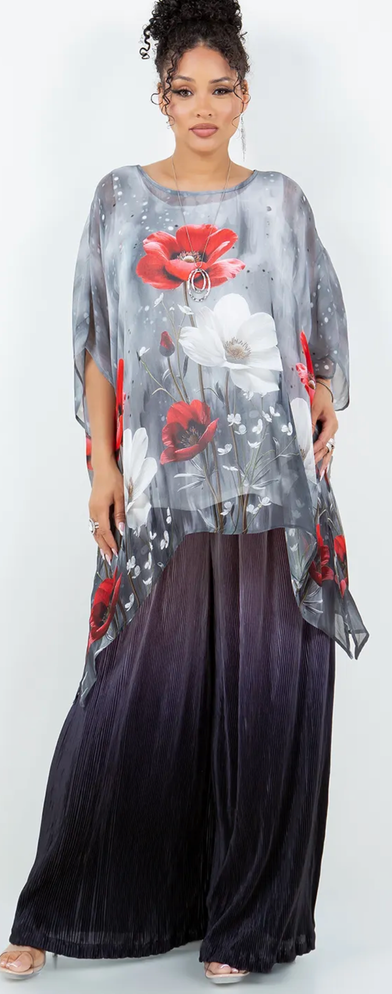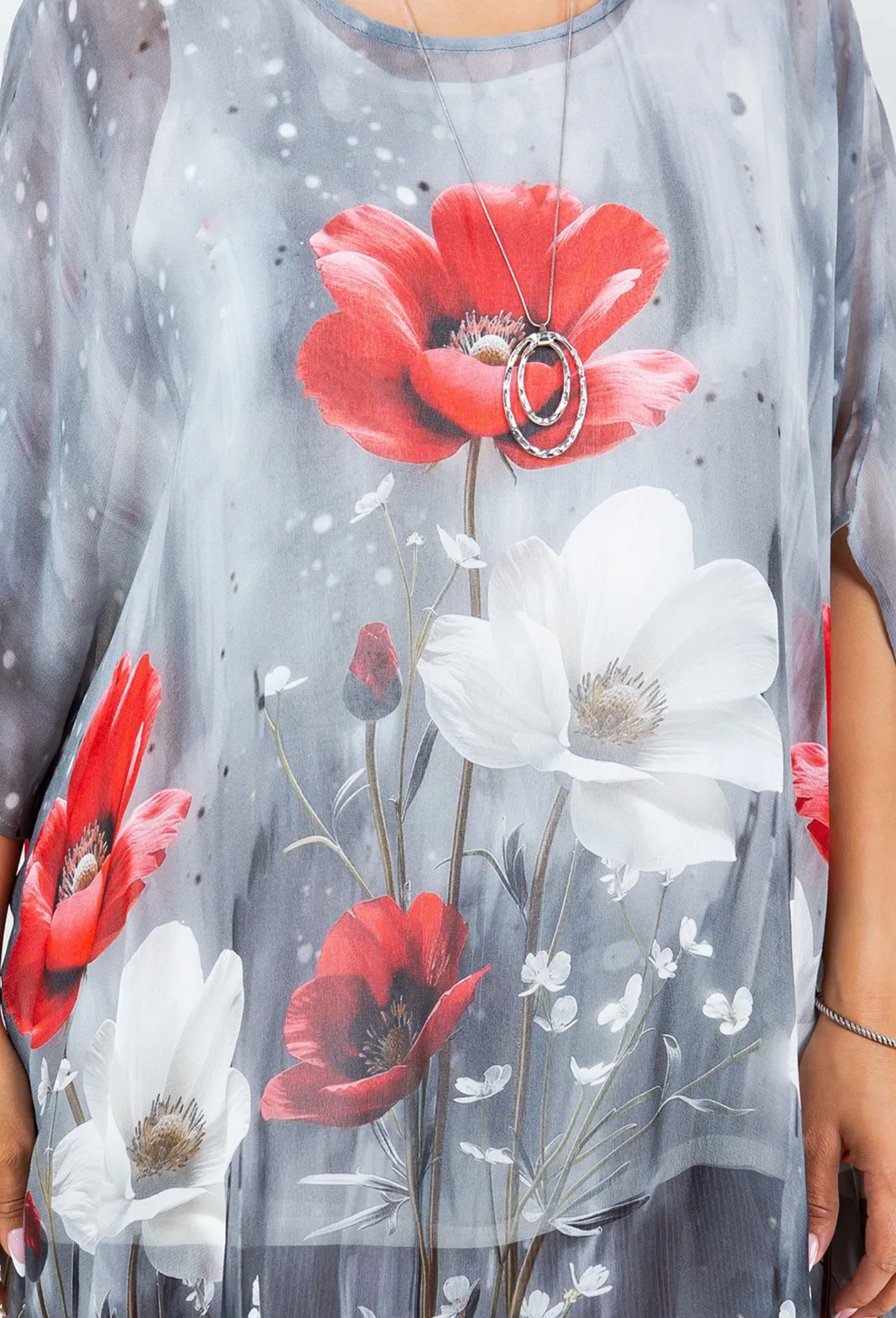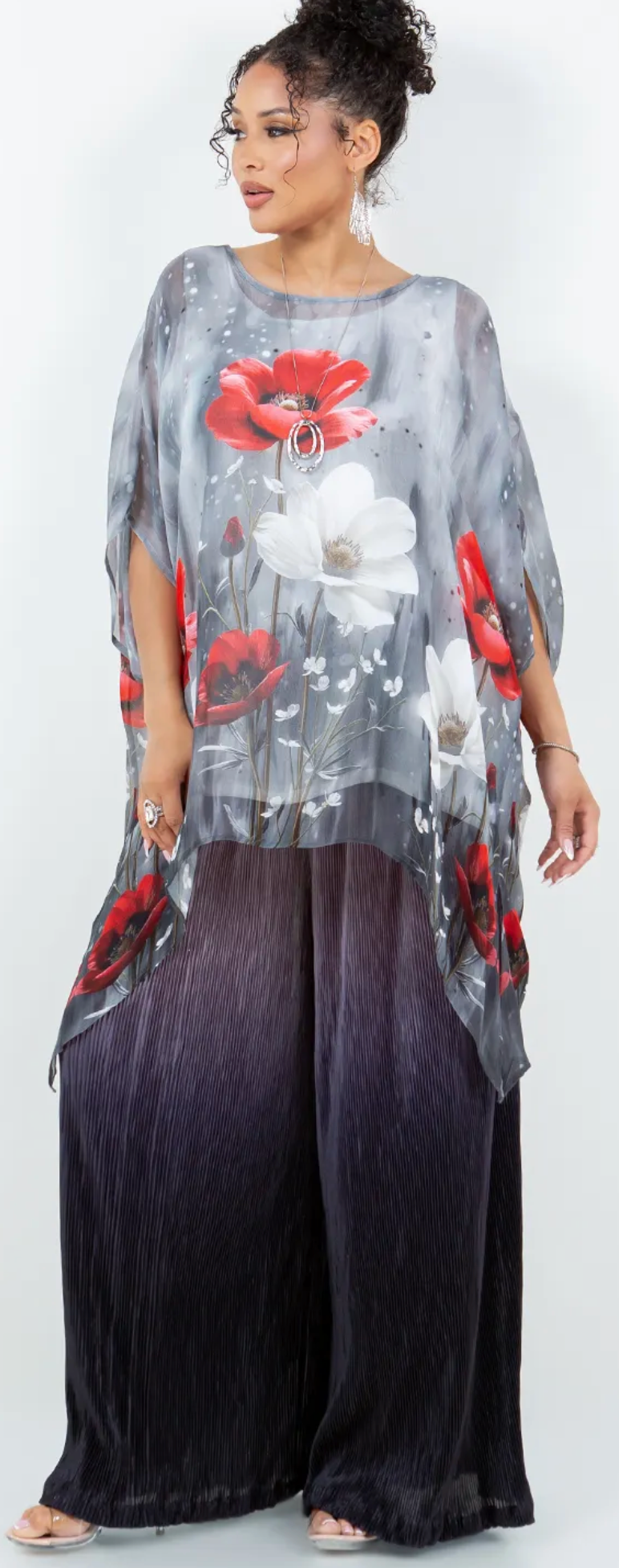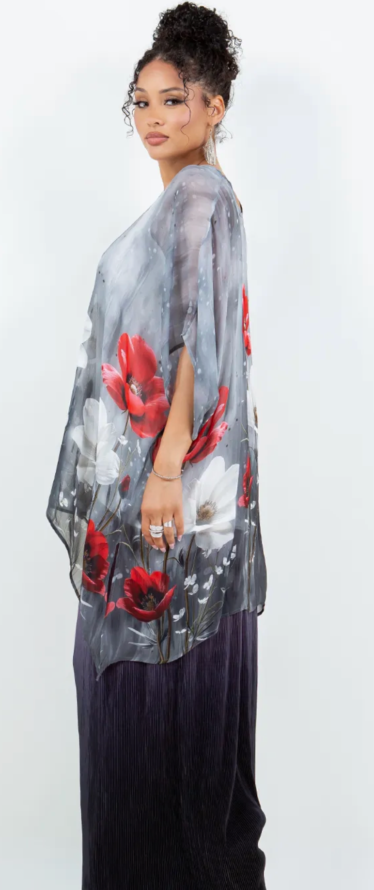 Size GuidePoly HAND-WASH LINE DRYONE SIZE FITS SML-6X • Bust 76"• Upper Arm 40"• Hips 76" • Length 29" - 38" We all love these throw-em-on-and-Go Oversize Tops. Sophisticated Casual Clothing is...