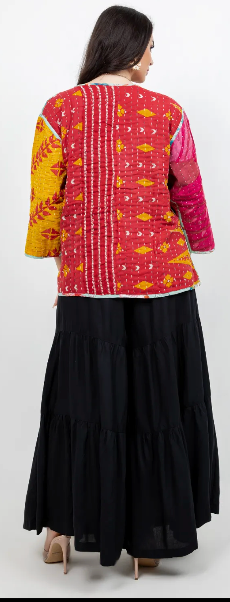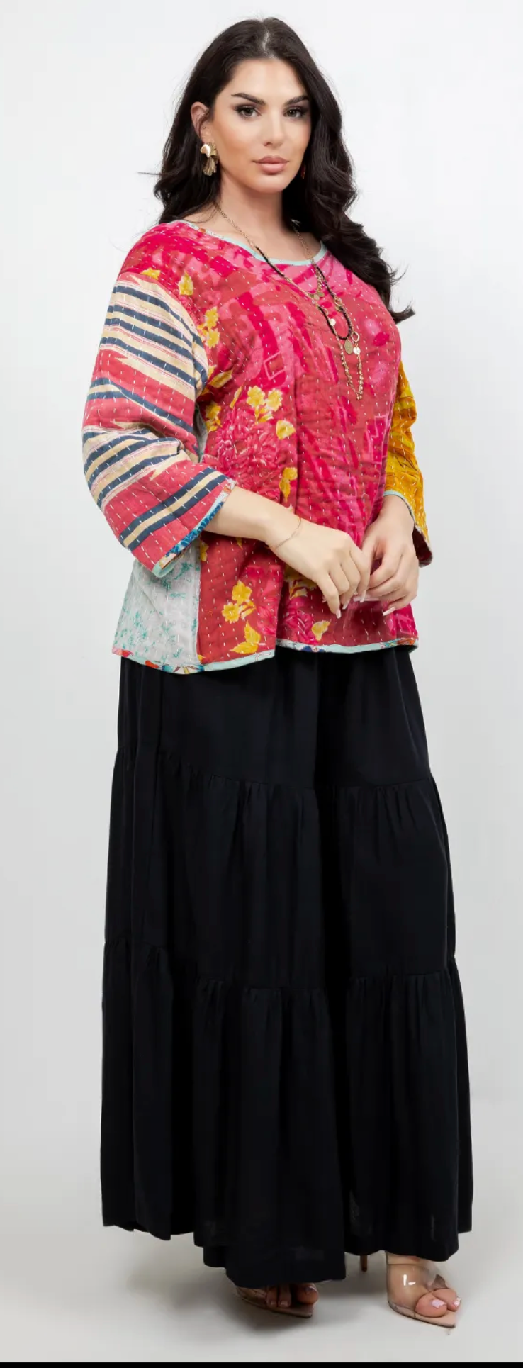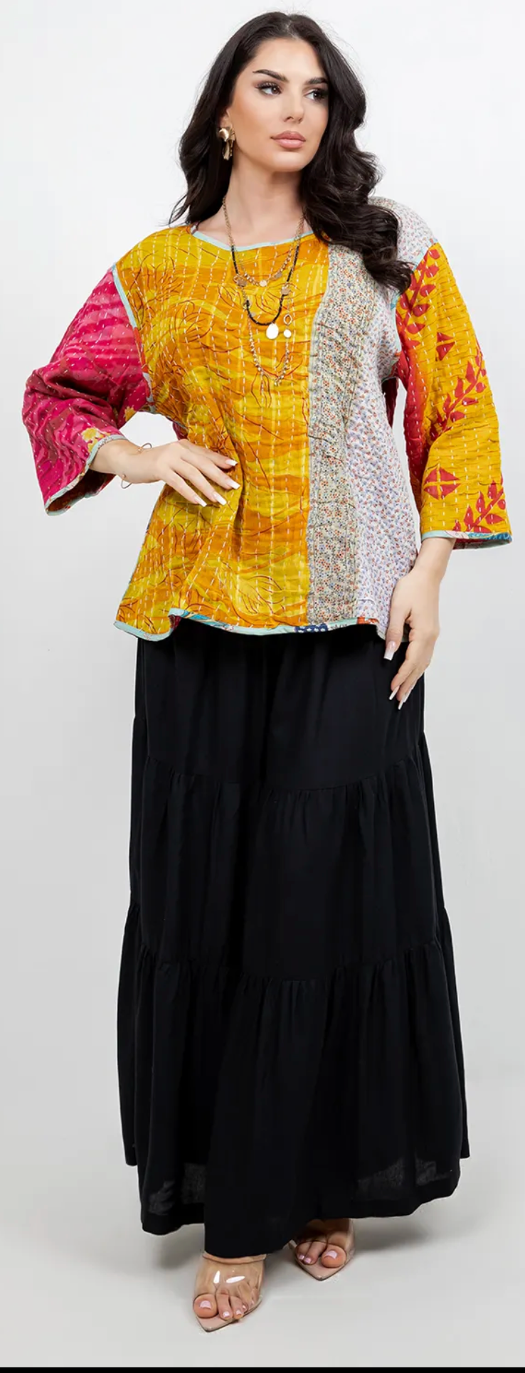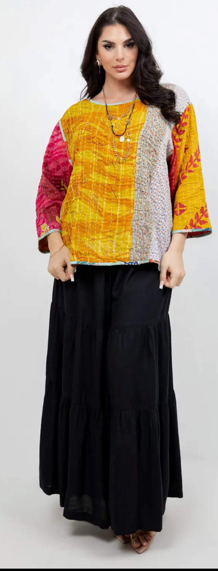 Size GuideCOTTON Bust 50" Hips 54+" Length 27.5" 🧵 Design Details: Kantha Patchwork Tunic This Sausalito Kantha Tunic is a one-of-a-kind wearable art piece crafted from vintage cotton saris. Each tunic...
