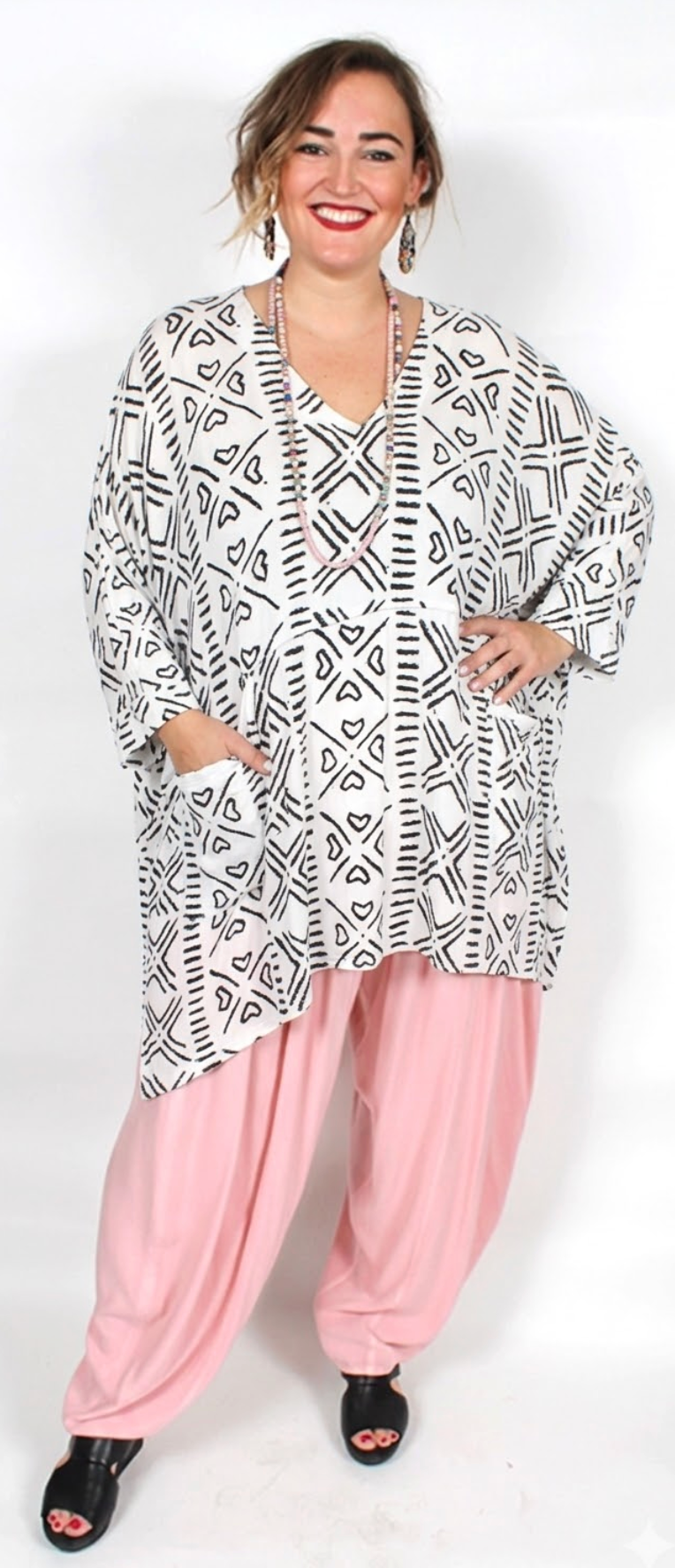 Size GuideMosaic Hi-Low plus tunic tops are back! Oversize stitching on the outside, very fashion forward a lagenlook favorite! Very generous design - flowing and fabulous. •Bust 76 •Hip 76" •Length...
