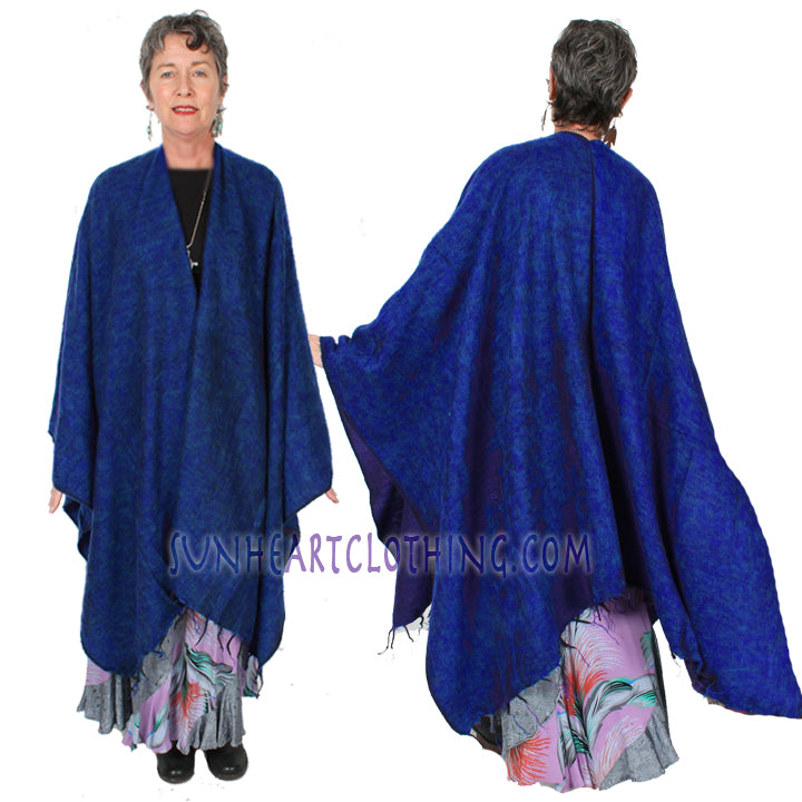 Size GuideSunHeart Ruana JacketPoly & Acrylic Blend ONE SIZE FITS ALL • Bust 59" across total 108" • Length 30" Well Sunheart is back in the design room, and these are our new Ruana's...