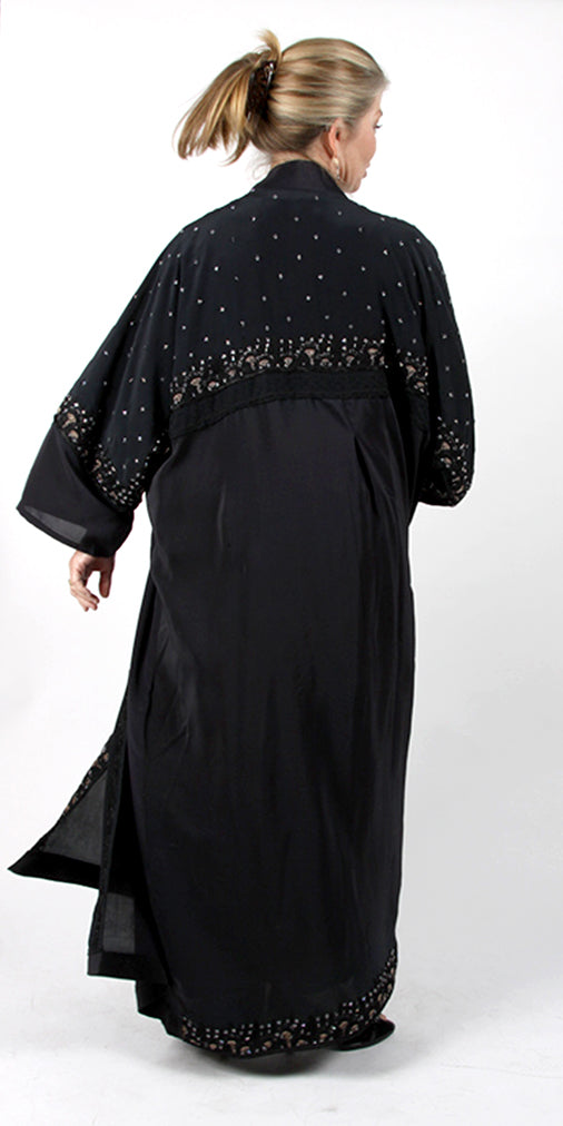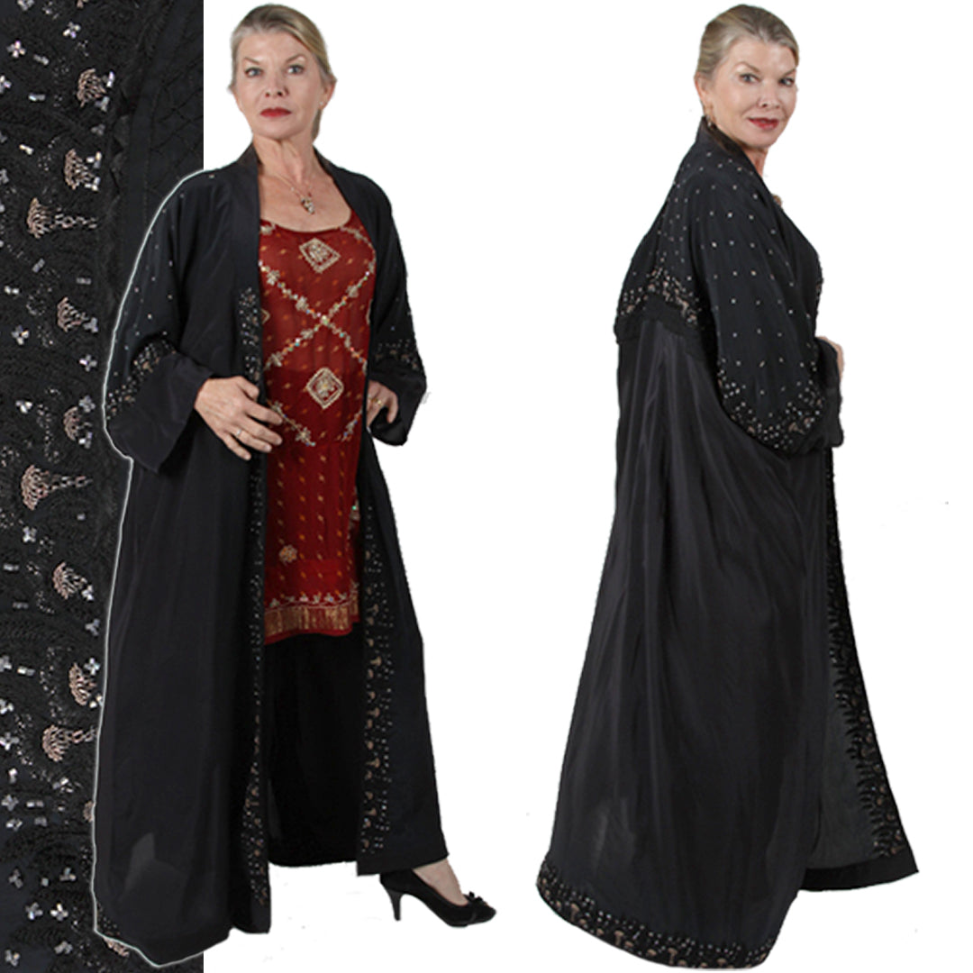 Size GuideSilk Velvet Goddess Beaded Jacket SILK VELVET • Dry CleanONE SIZE FITS SML-2X• Bust 60'• Length 37" Stunning silk velvet beaded jacket - the last of these! Made to drape...