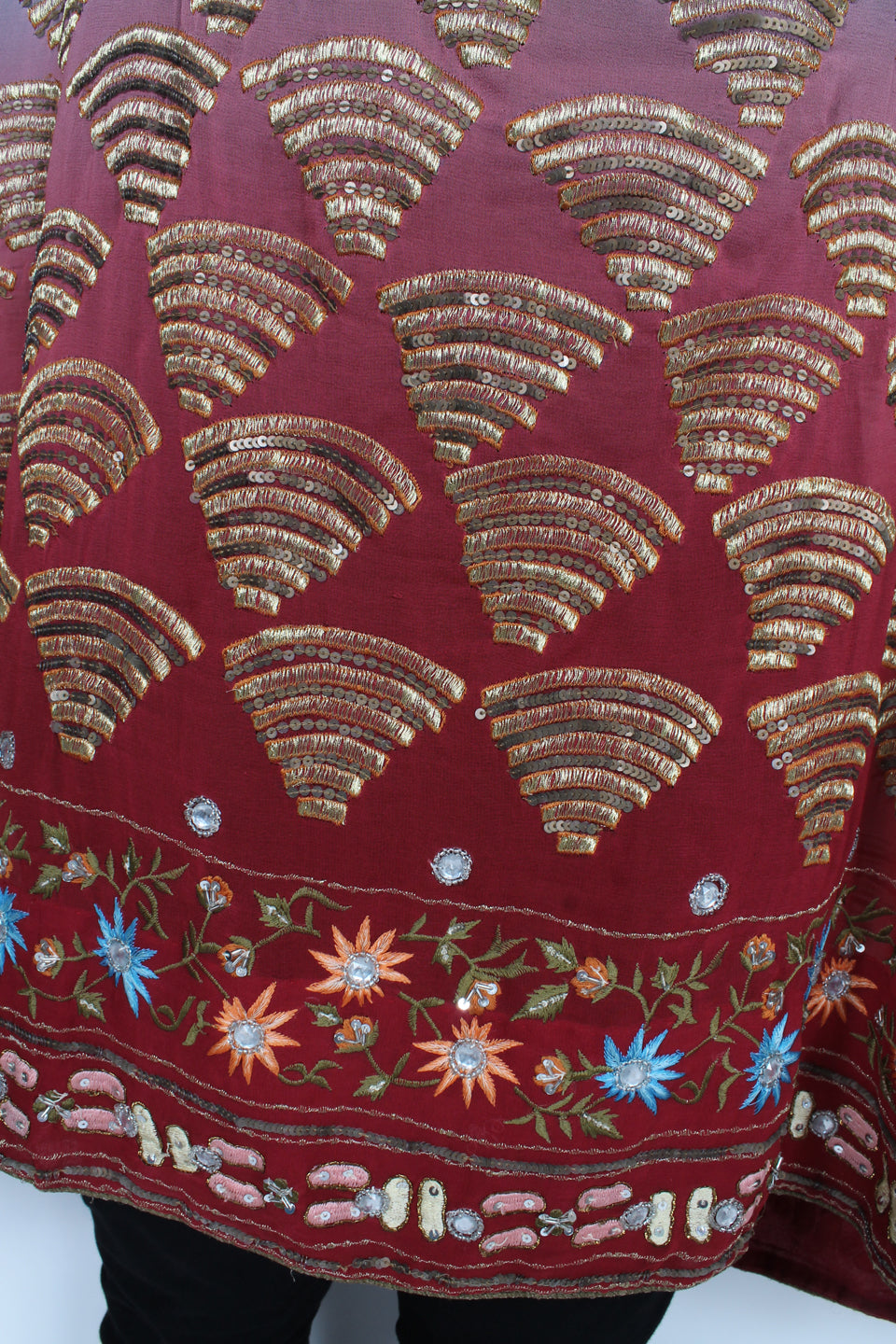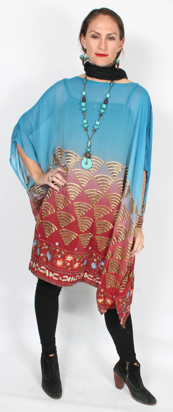 Size GuideEmbellished with gems Top Perfect for holidays, evening wear and when you want to turn some heads. Transparent rayon chiffon heavily embroidered with gems, gold seed beads, rondels, sequins and crystals....