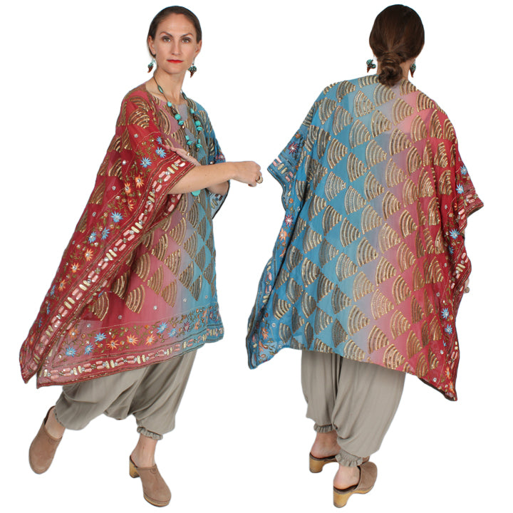 Size GuideSunHeart: vintage Silk Ruana embroidered stripe silk 100% SILK DRY CLEAN ONE SIZE FITS SML-9X Bust 100" wingspan open• Hips 100"• Length 37"-44" We have had our heads to the...