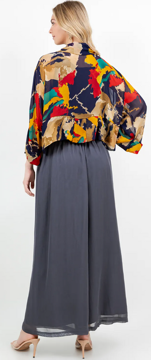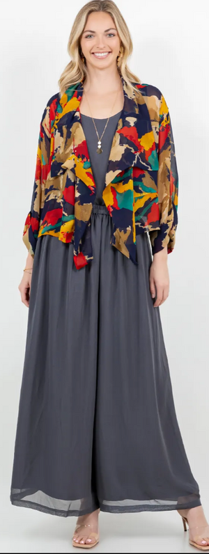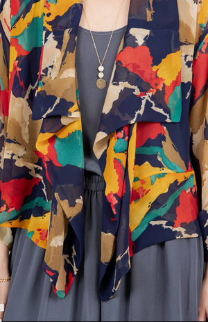 Rich colorfield over the landscape of this delightful jacket is a new arrival on the Fashionista scene - and the one size garment is generously designed.
