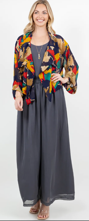 Open front asymmetrical boho ju-ju will turn the magic on for your outfit. Each piece is one-of-a-kind mixed fabrics, enjoy you are the only one wearing this knock out jacket at your many outings!