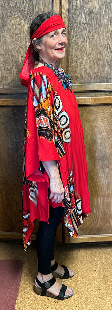 Size GuideBOHO CAFTAN TUNIC ONE OF A KIND! RAYON HAND-WASH-DRIP DRY ONE SIZE FITS SML-5X• Bust 100"• Upper Arm 20"• Hips 62"• Length side 38" One-of-a-Kind Boho Tunic – Joyful Color...