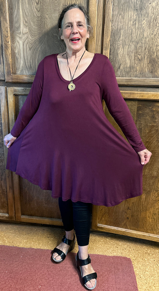 Size Guide95% MODAL 5% SPANDEX MACH WASH COLD LINE DRY ONE SIZE FITS SML-7X+ • Bust 70" stretched 90" • Arm Hole 30"• Hips 66"-80"• Length 34" My favorite fabric, feels like...