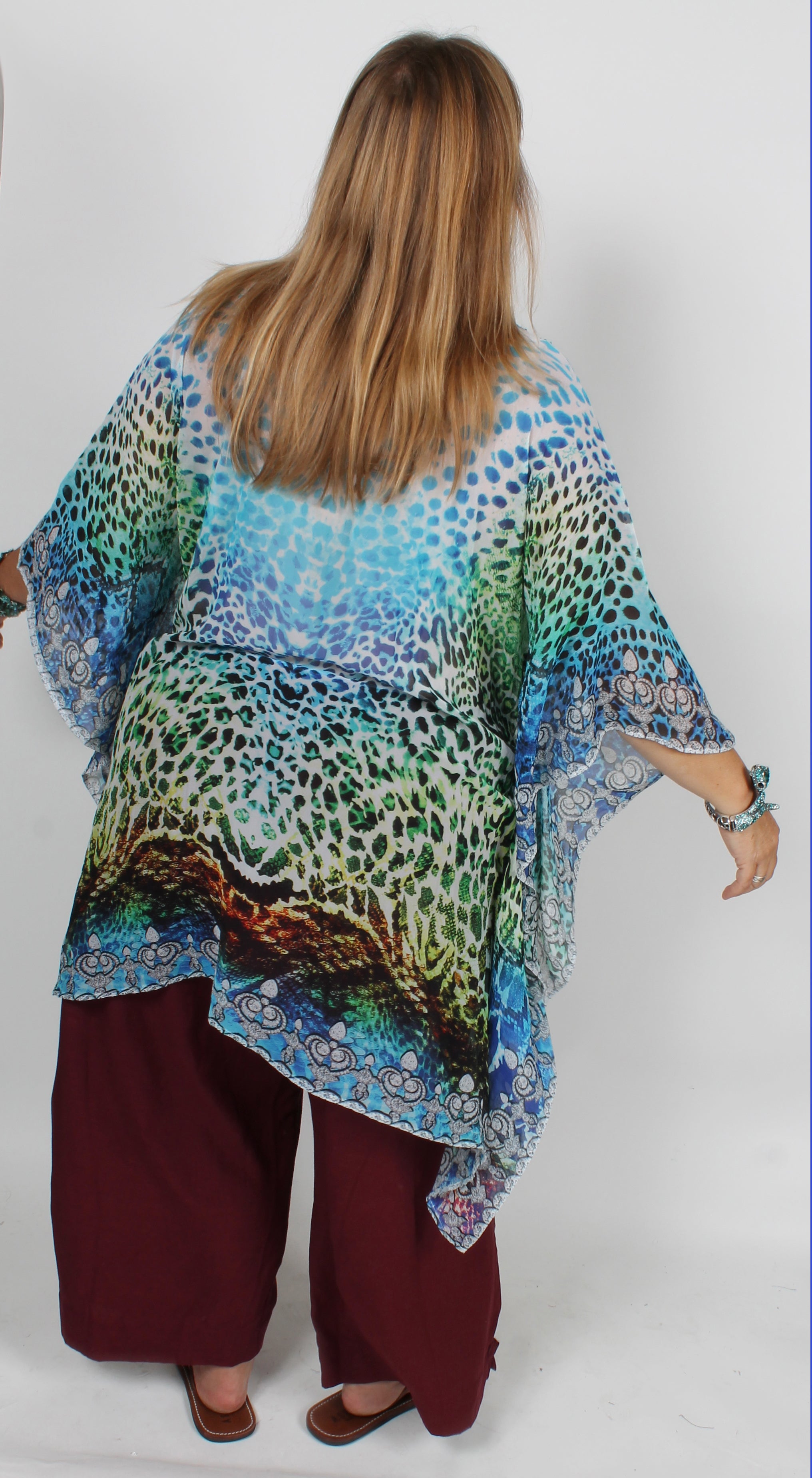Size Guide95% RAYON JERSEY 5% SPANDEX MACH WASH COLD ONE SIZE FITS SML-10X• 78" open side to side • Length front 25" - back 35" We've discounted this out the gate so you...